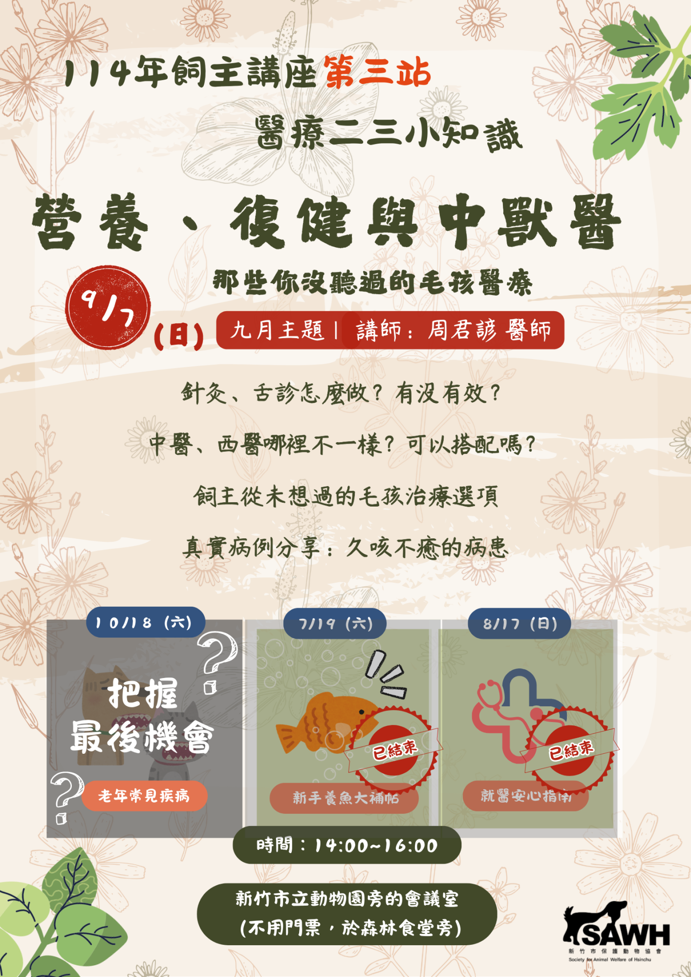 【09.07 營養、復健與中獸醫:那些你沒聽過的毛孩醫療】 -- 114年度 飼主講座報名表